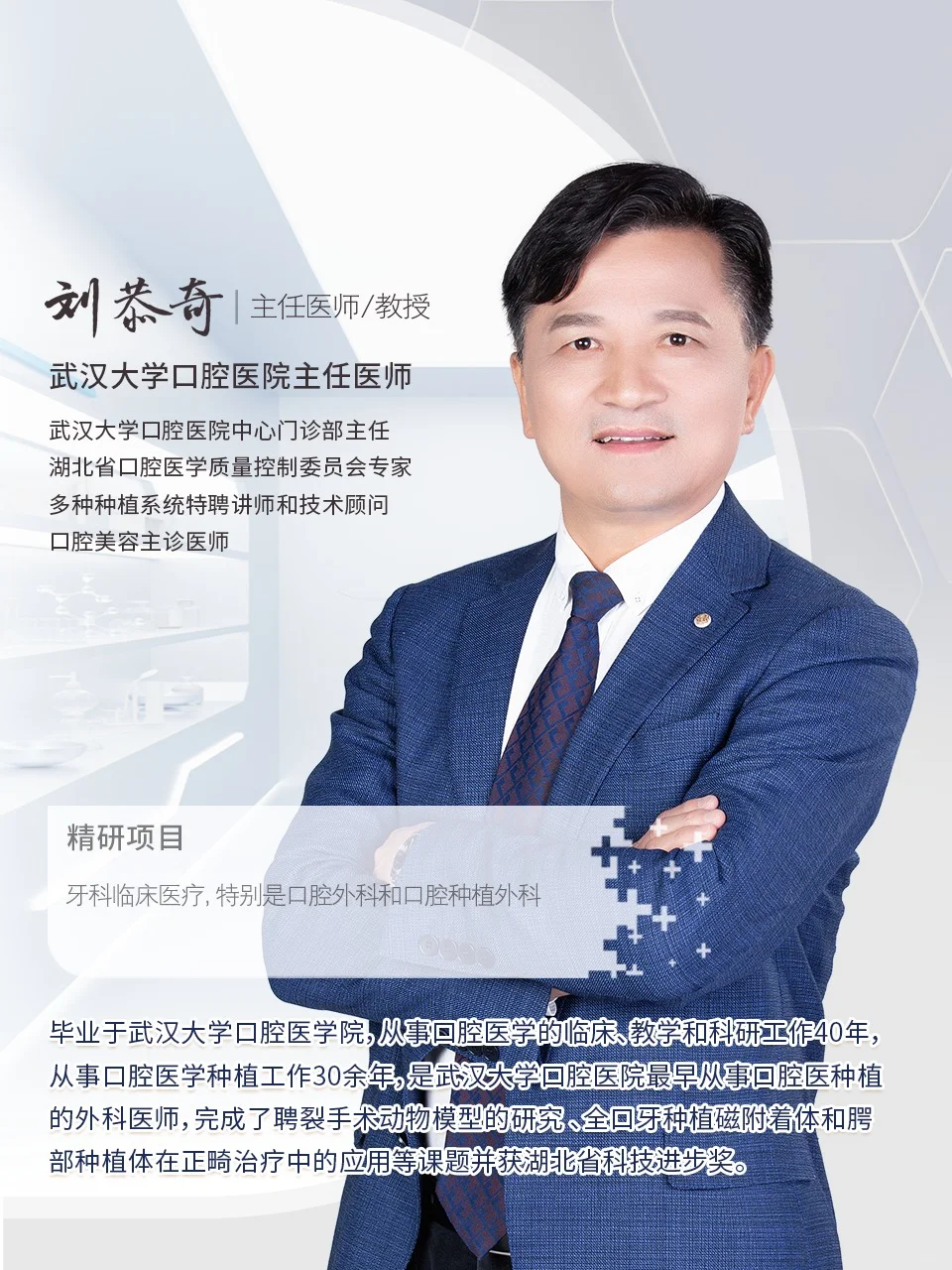 🎊大家好,我是武汉大学口腔医院主任医师刘恭奇,擅长牙科临床医疗,特别是口腔外科和口腔种植外科。初来乍到,今天简单介绍一下自己吧!我只是个普通的医生,本本分分的60后,秉承着踏踏实实,认认真真做人做事的原则,能够给患者和身边的人送去一点温情和暖意,我已经很心满意足了。有时治愈,常常帮助,总是安慰。我认...[查看阅读]